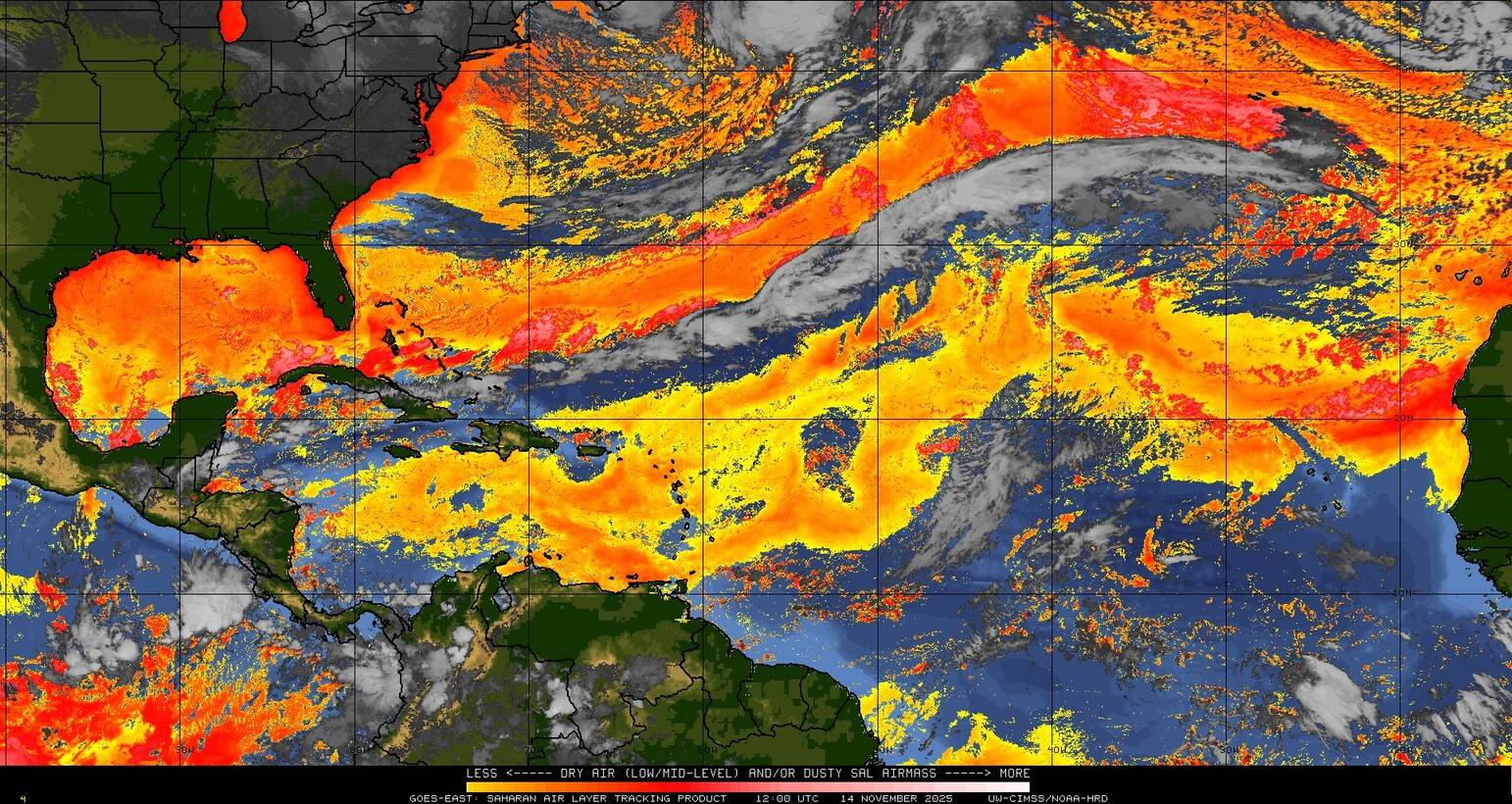 Il n’y a pas de cyclone ni de système surveillé par le NHC en Atlantique.