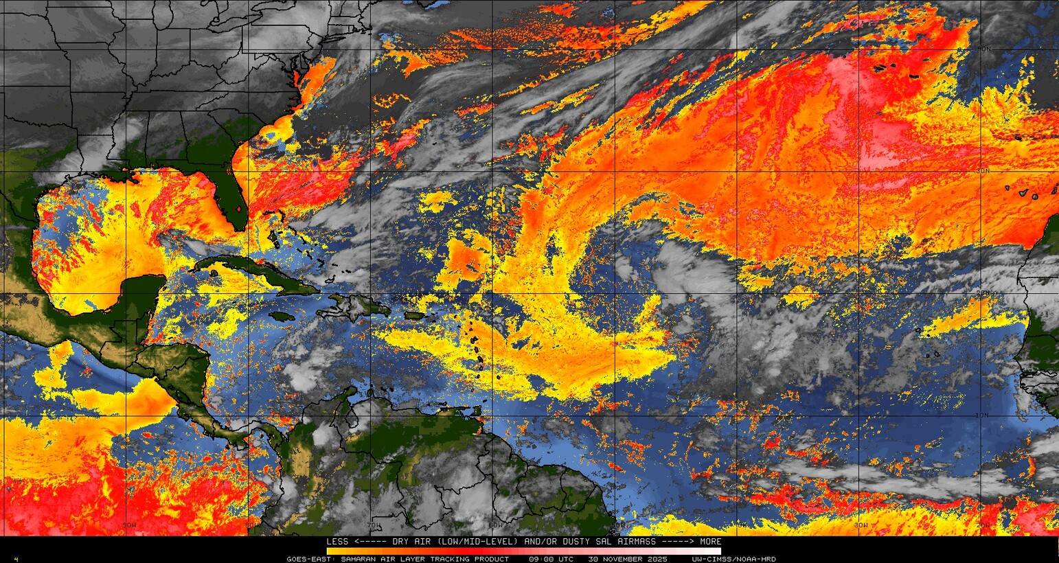 Il n’y a pas de cyclone ni de système surveillé par le NHC en Atlantique.