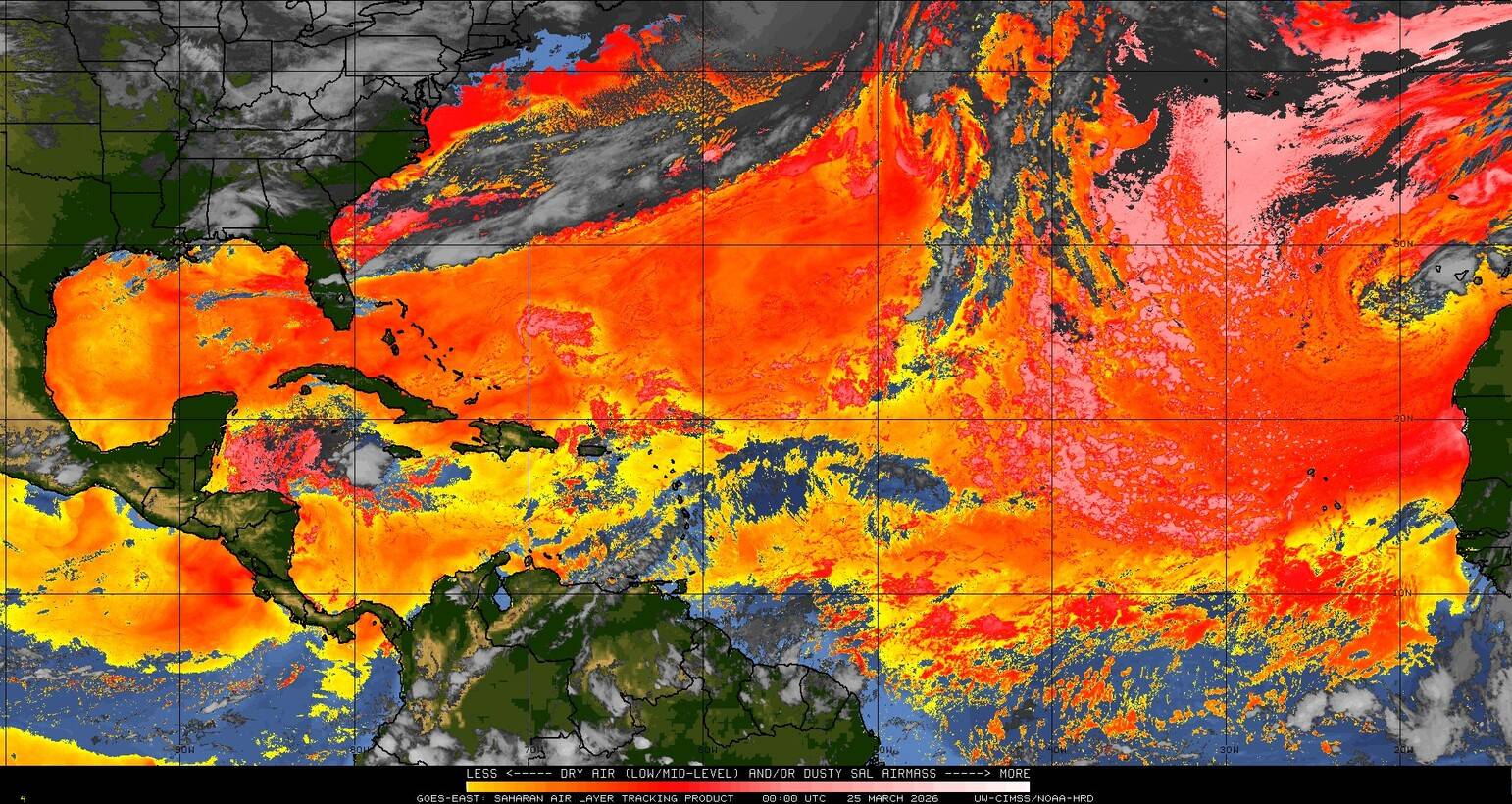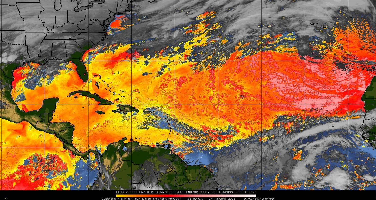 Il n’y a pas de cyclone ni de système surveillé par le NHC en Atlantique. Nous ne sommes pas actuellement en période cyclonique