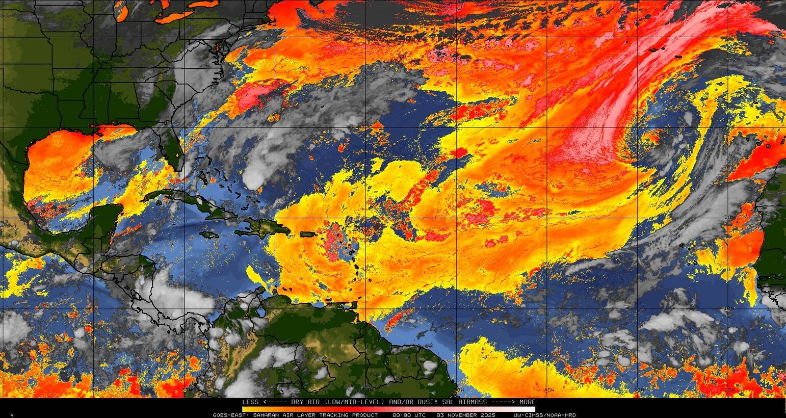 Il n’y a pas de cyclone ni de système surveillé par le NHC en Atlantique.