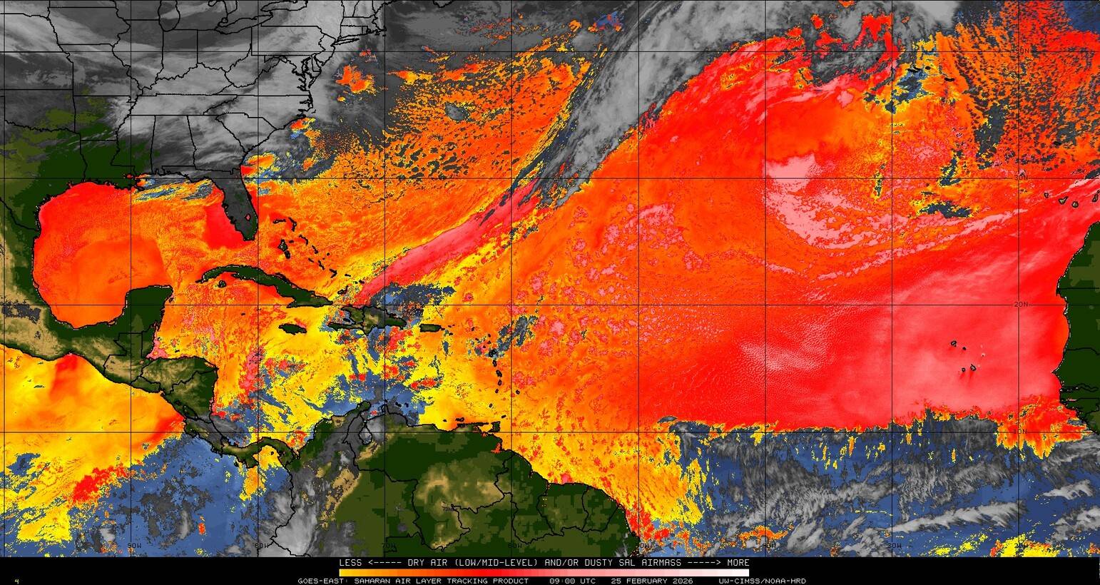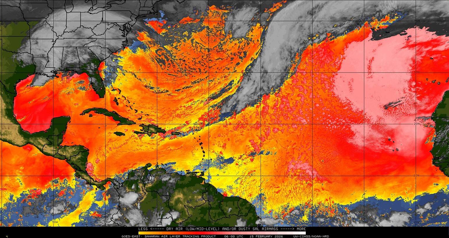 Il n’y a pas de cyclone ni de système surveillé par le NHC en Atlantique. Nous ne sommes pas actuellement en période cyclonique