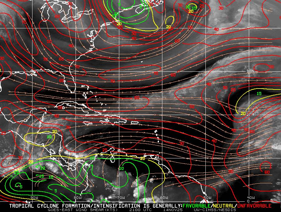 Il n’y a pas de cyclone ni de système surveillé par le NHC en Atlantique.