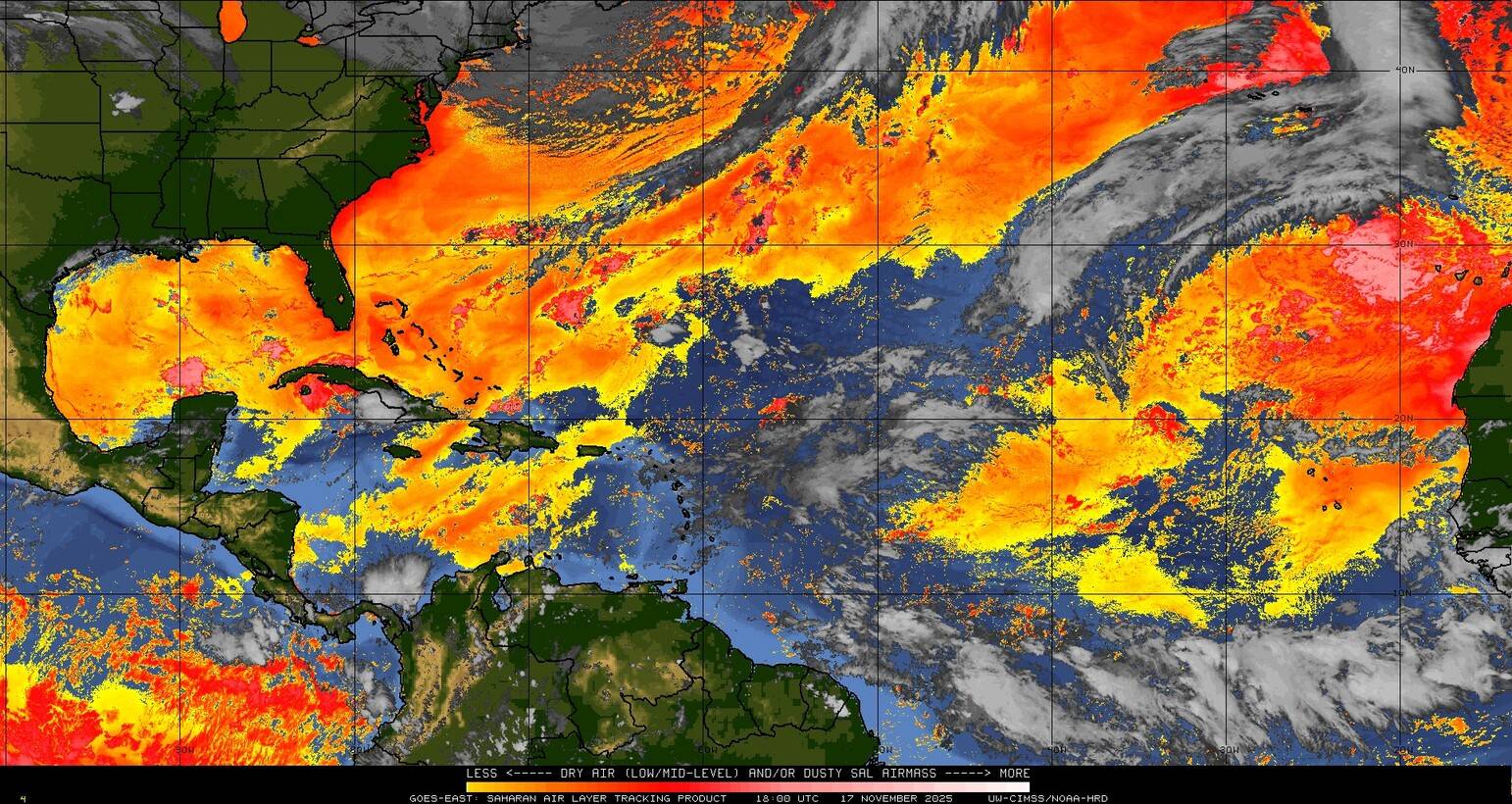Il n’y a pas de cyclone ni de système surveillé par le NHC en Atlantique.
