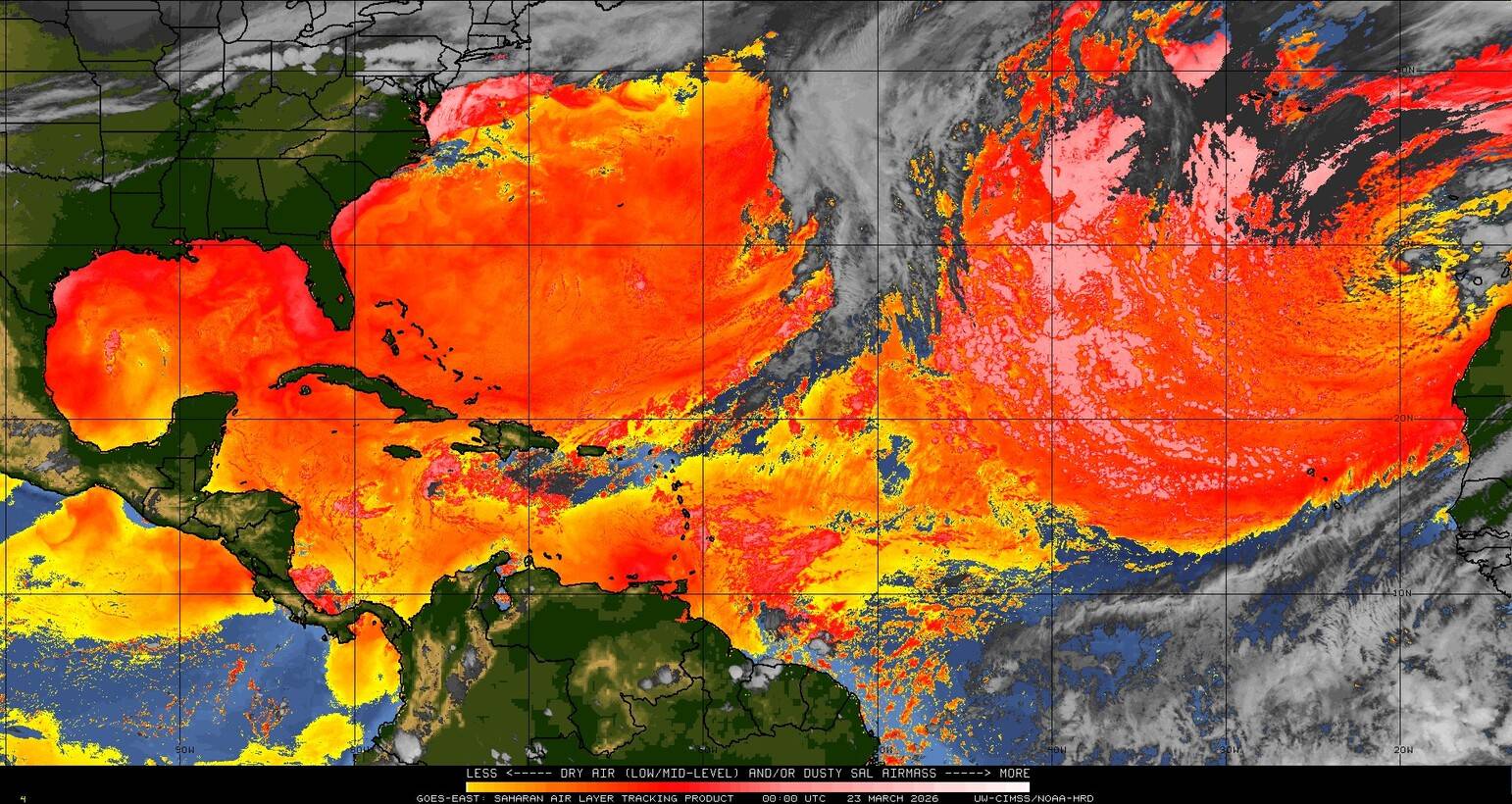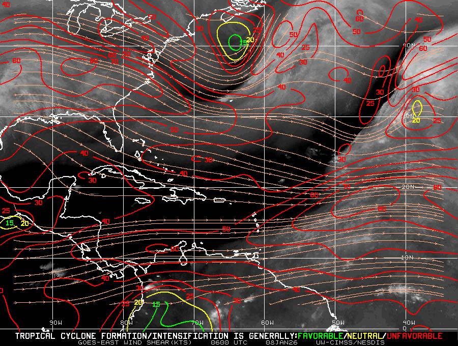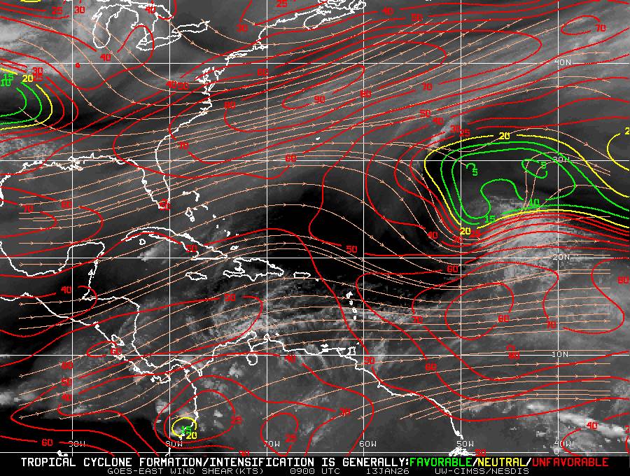 Il n’y a pas de cyclone ni de système surveillé par le NHC en Atlantique. Nous ne sommes pas actuellement en période cyclonique