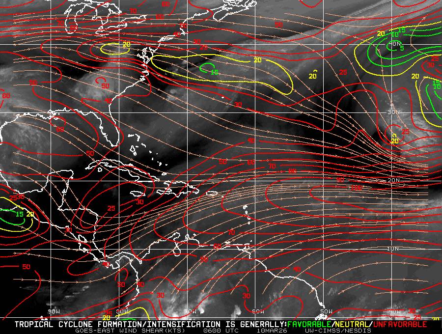 Il n’y a pas de cyclone ni de système surveillé par le NHC en Atlantique. Nous ne sommes pas actuellement en période cyclonique