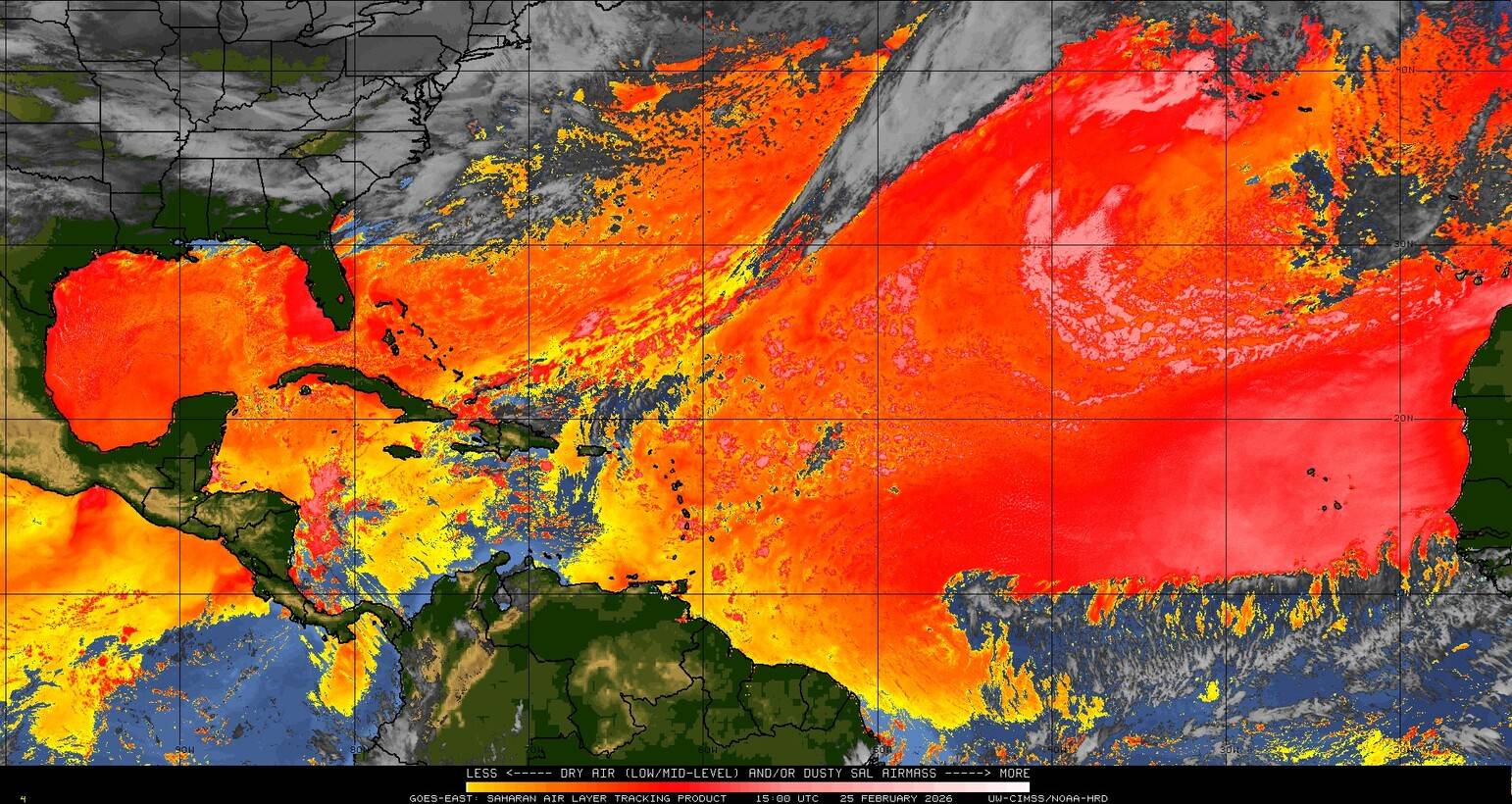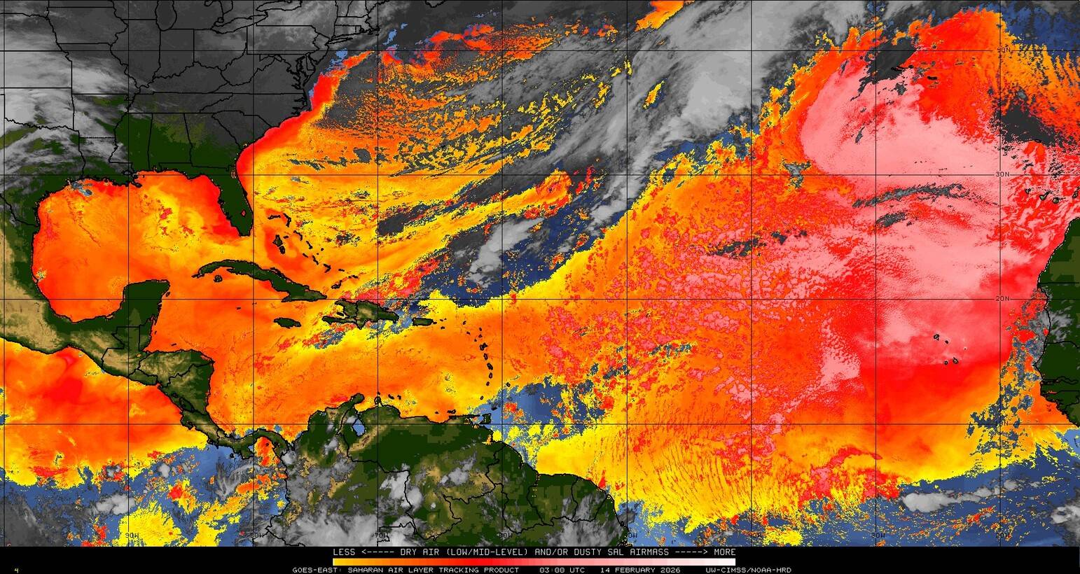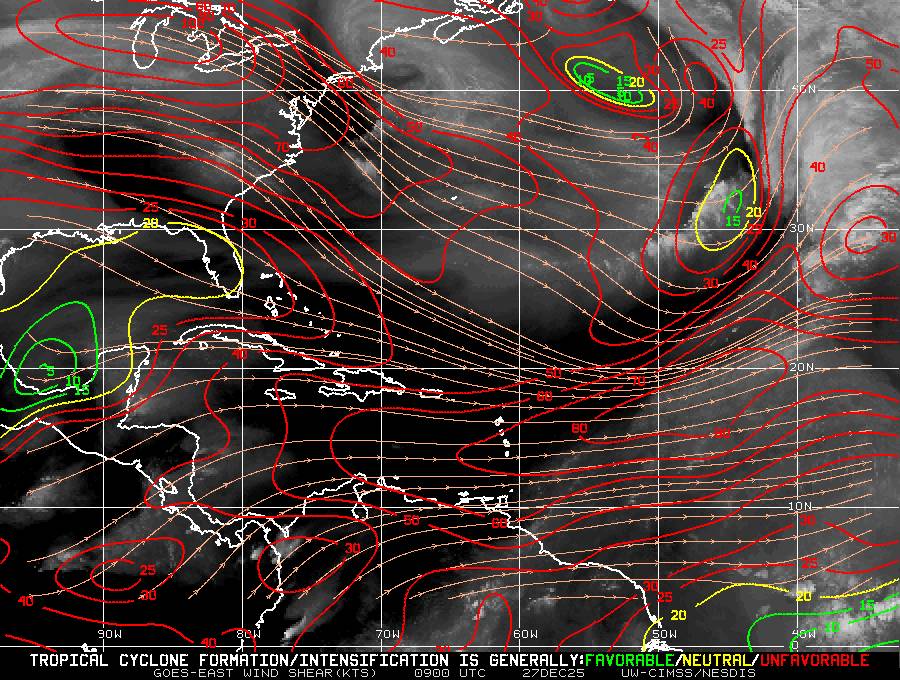 Il n’y a pas de cyclone ni de système surveillé par le NHC en Atlantique. Nous ne sommes pas actuellement en période cyclonique