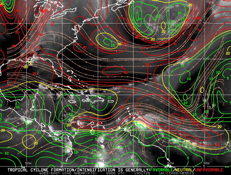 L’ INVEST 98L (1) situé(e) sur 12.6 N par -55.1 W (à 493 km à l’Est de Barbados). L’intensité est de 30 kts et la pression de 1010 hPa. Le risque de renforcement est de 10% à 48H et de 40% à 7 jours. L’onde tropicale (2) située sur 38.12 N par -55.4 W. Le risque de renforcement est de 0% à 48H et de 0% à 7 jours.