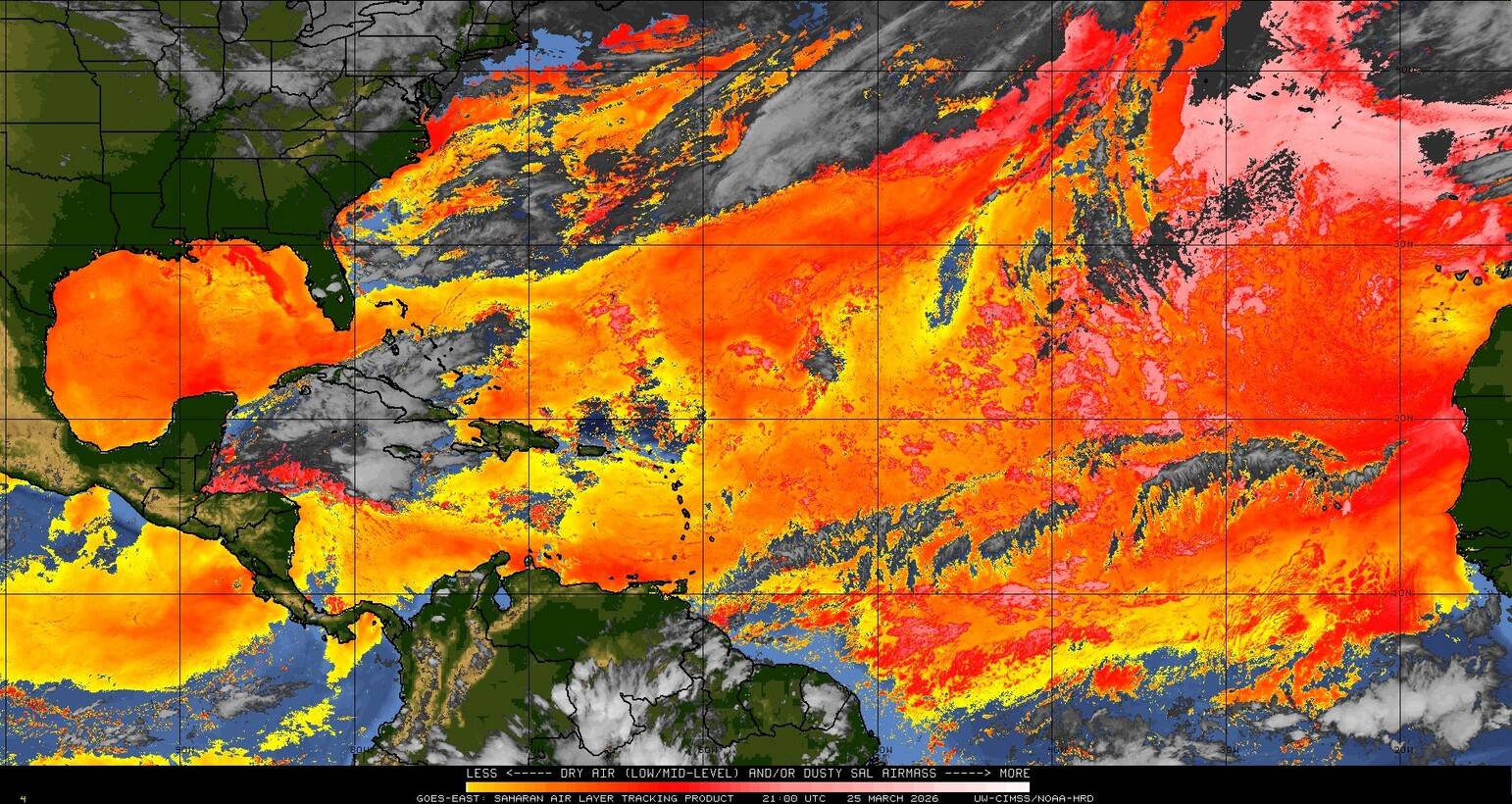 Il n’y a pas de cyclone ni de système surveillé par le NHC en Atlantique. Nous ne sommes pas actuellement en période cyclonique