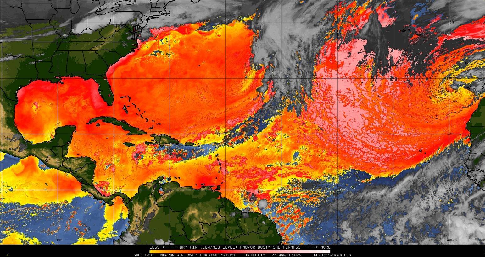 Il n’y a pas de cyclone ni de système surveillé par le NHC en Atlantique. Nous ne sommes pas actuellement en période cyclonique
