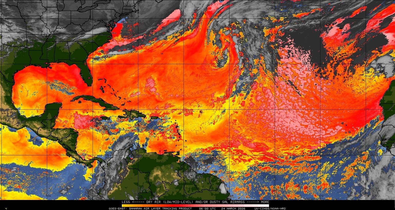Il n’y a pas de cyclone ni de système surveillé par le NHC en Atlantique. Nous ne sommes pas actuellement en période cyclonique