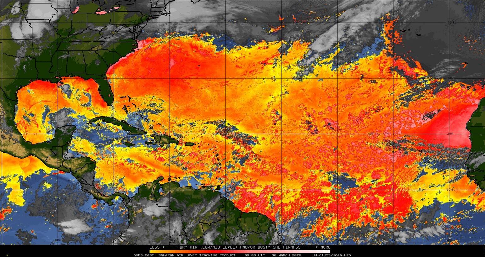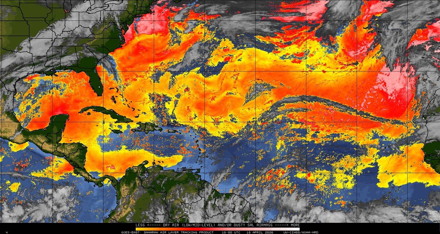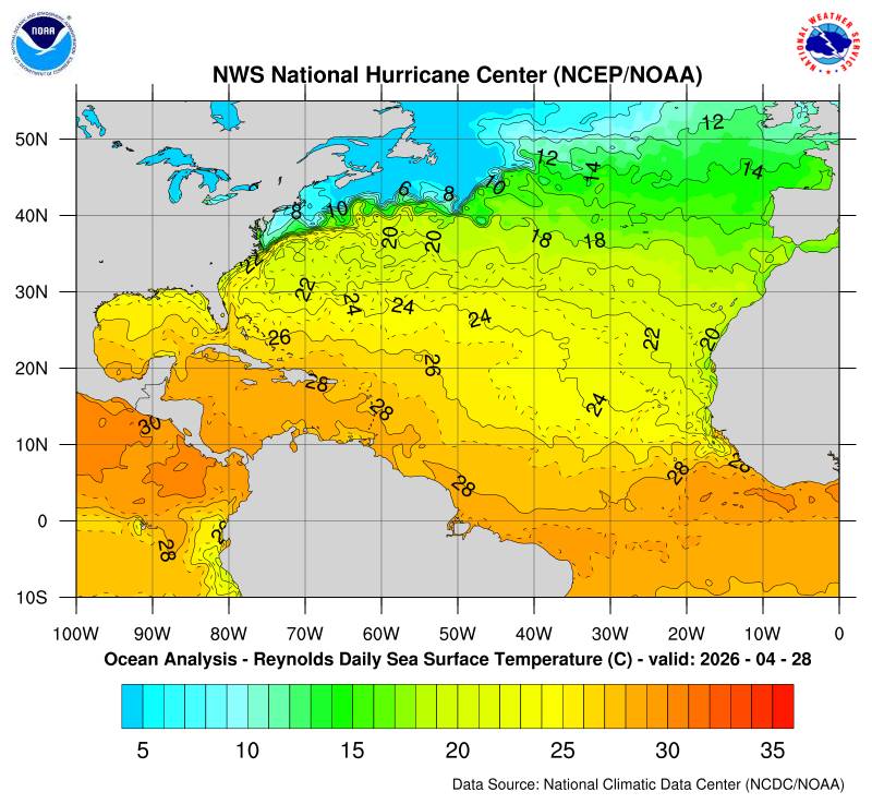 Il n’y a pas de cyclone ni de système surveillé par le NHC en Atlantique. Nous ne sommes pas actuellement en période cyclonique