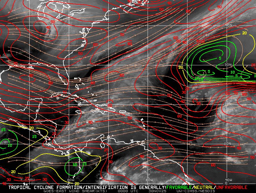 Il n’y a pas de cyclone ni de système surveillé par le NHC en Atlantique.