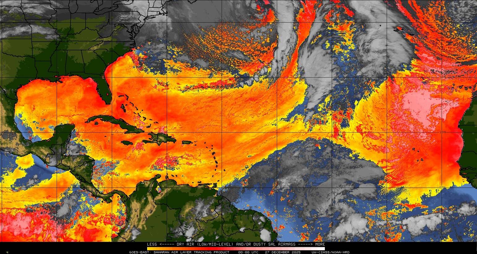 Il n’y a pas de cyclone ni de système surveillé par le NHC en Atlantique. Nous ne sommes pas actuellement en période cyclonique