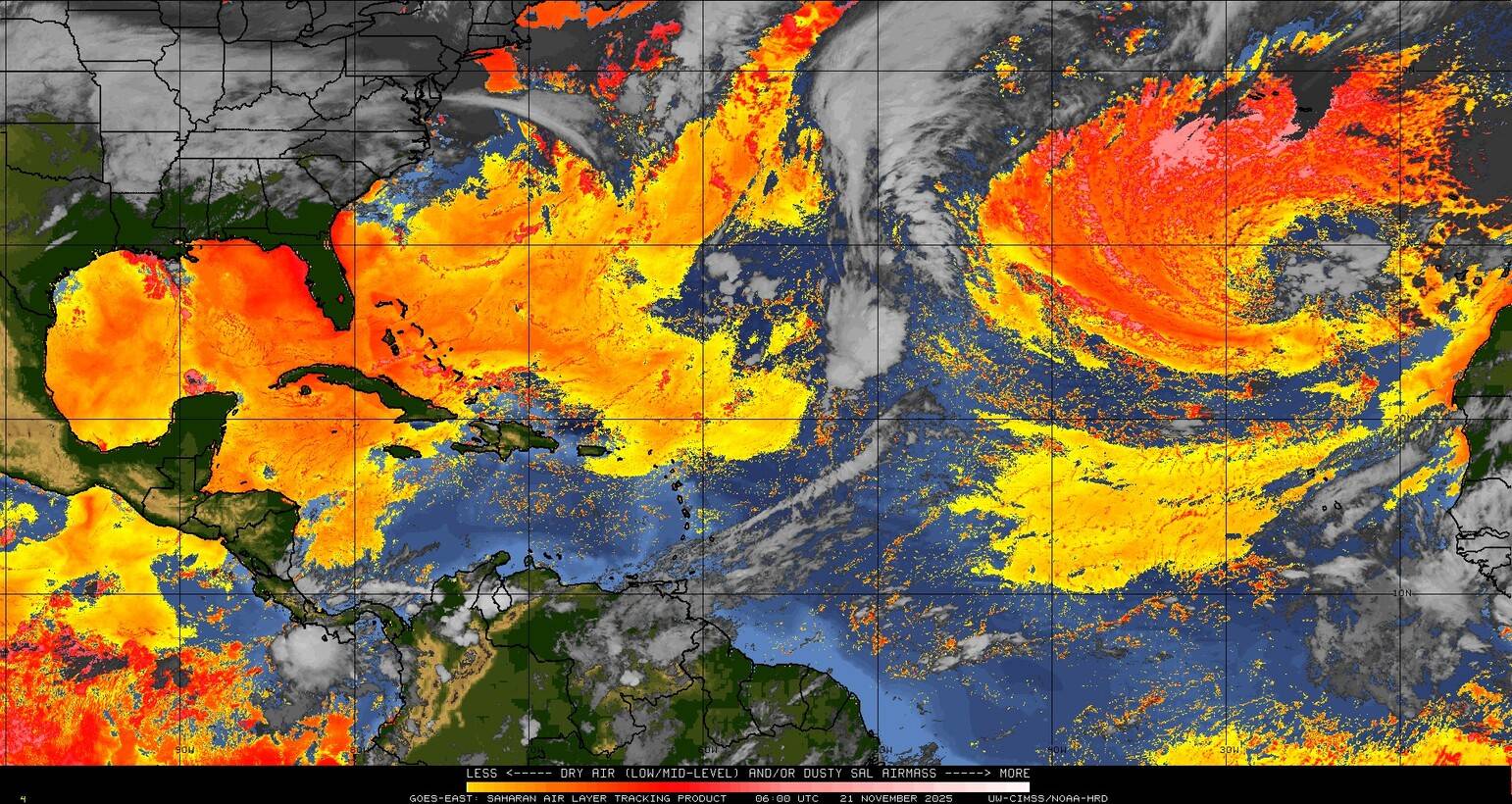 Il n’y a pas de cyclone ni de système surveillé par le NHC en Atlantique.