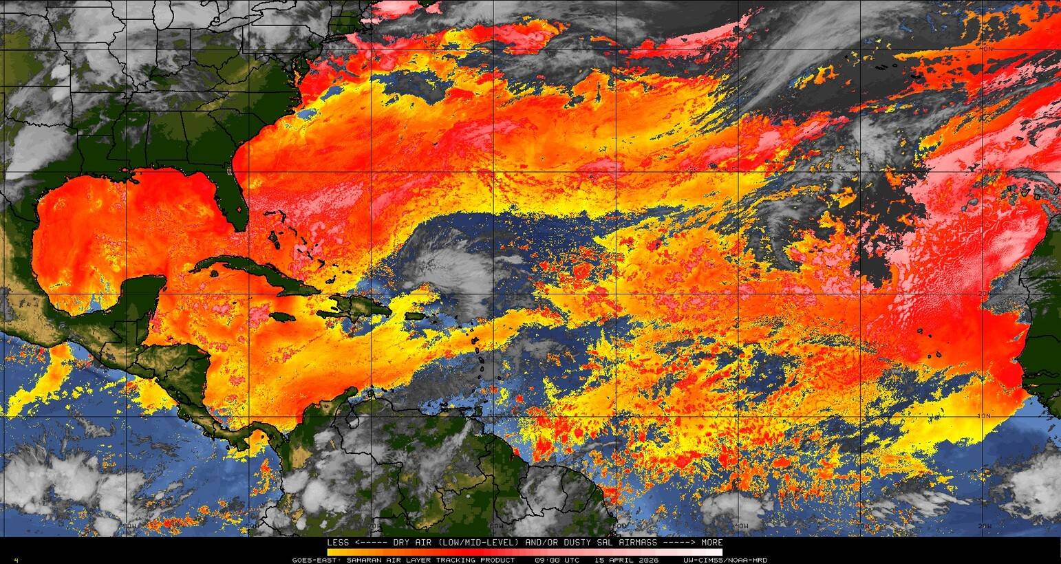 Il n’y a pas de cyclone ni de système surveillé par le NHC en Atlantique. Nous ne sommes pas actuellement en période cyclonique
