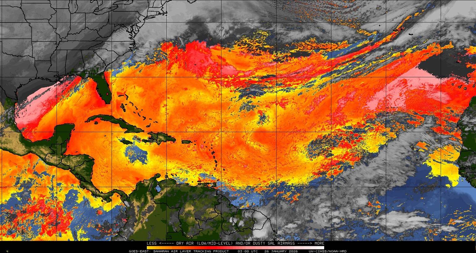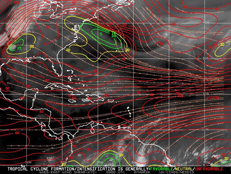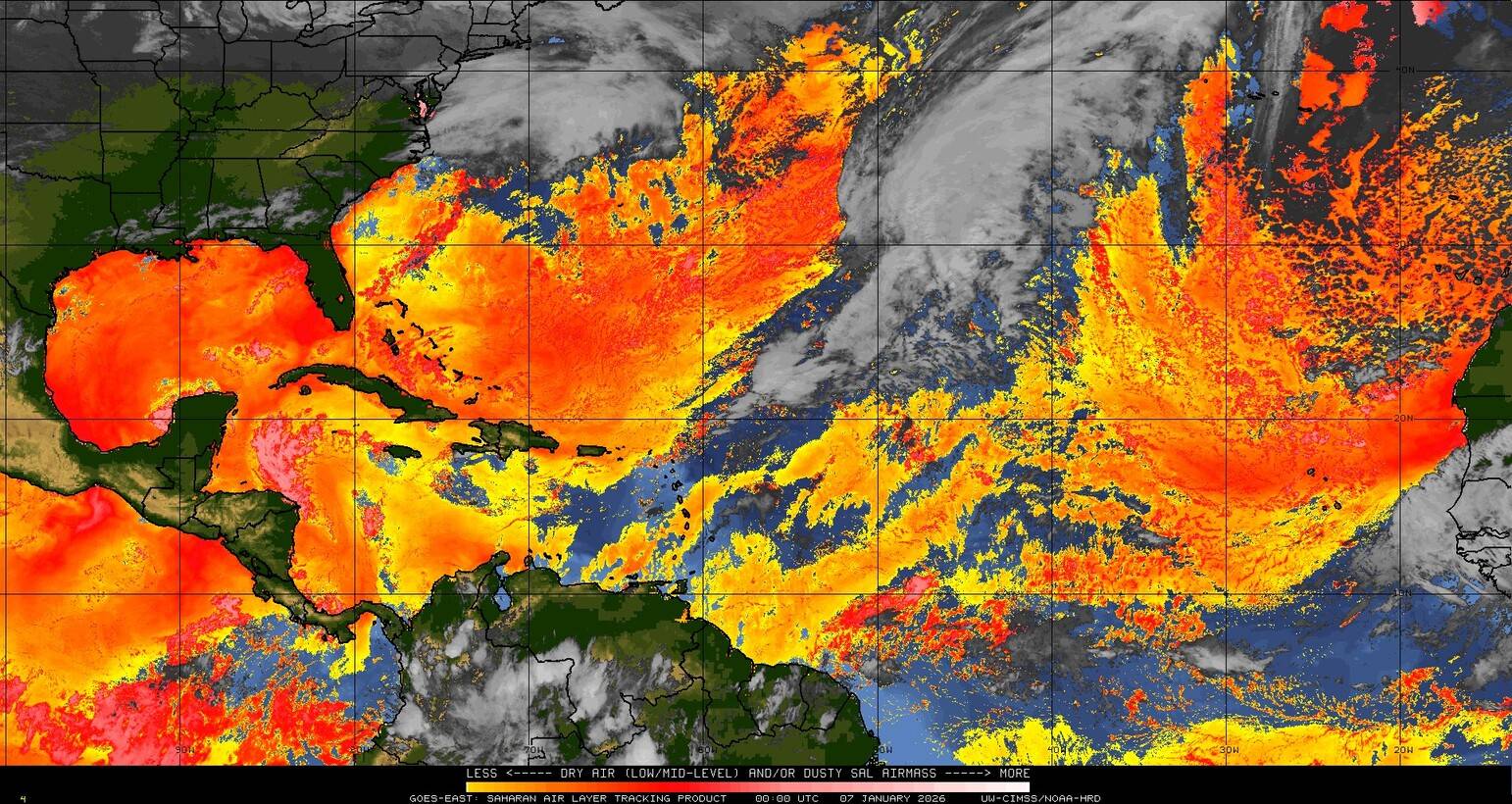 Il n’y a pas de cyclone ni de système surveillé par le NHC en Atlantique. Nous ne sommes pas actuellement en période cyclonique