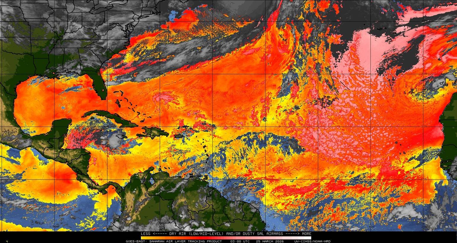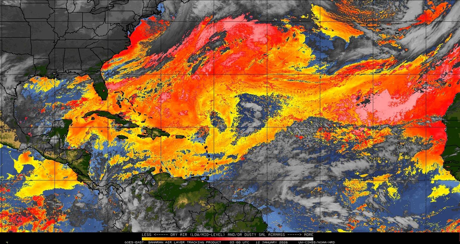 Il n’y a pas de cyclone ni de système surveillé par le NHC en Atlantique. Nous ne sommes pas actuellement en période cyclonique