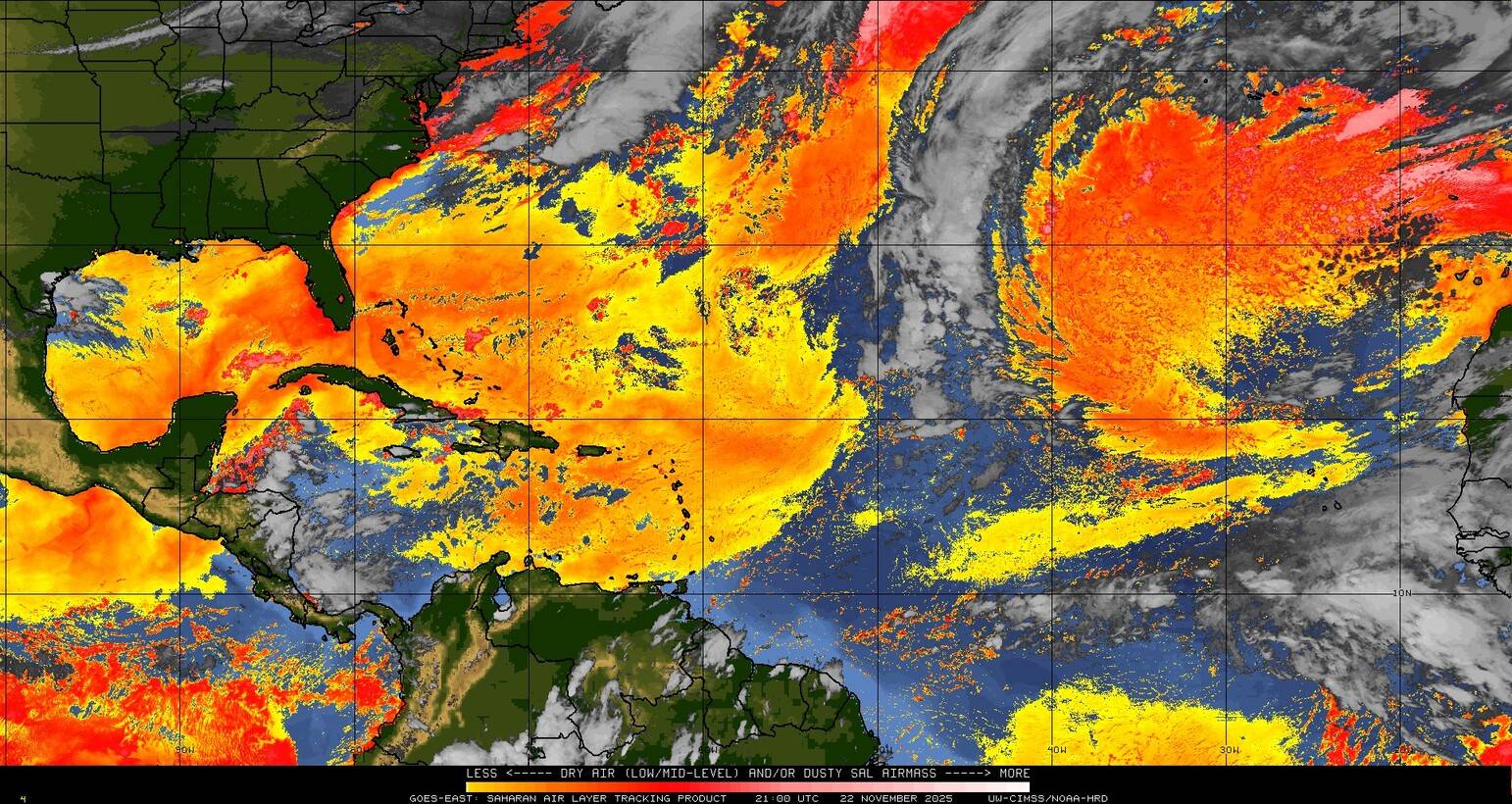 Il n’y a pas de cyclone ni de système surveillé par le NHC en Atlantique.