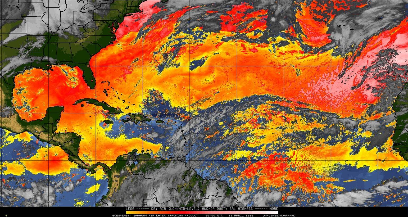 Il n’y a pas de cyclone ni de système surveillé par le NHC en Atlantique. Nous ne sommes pas actuellement en période cyclonique