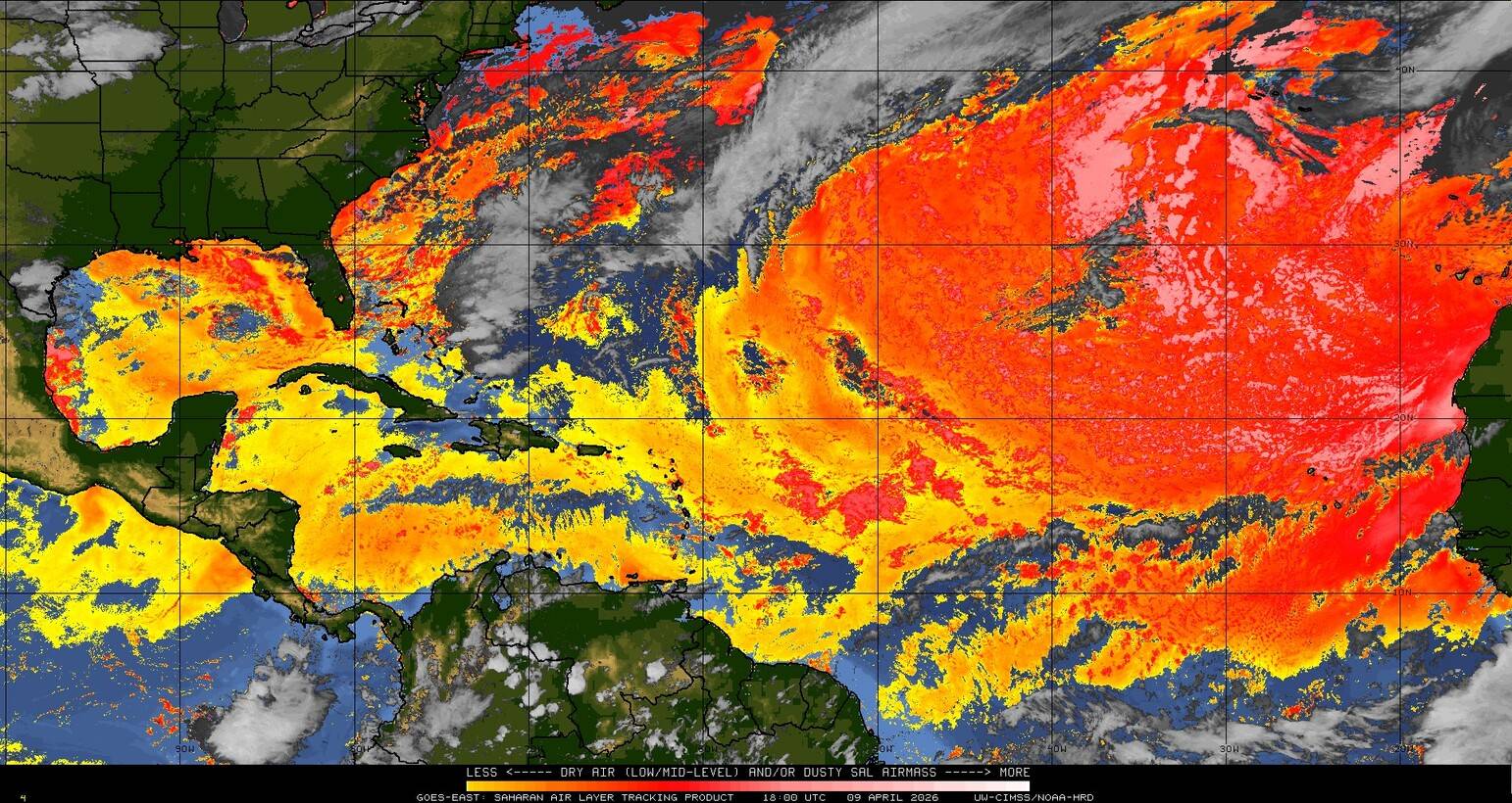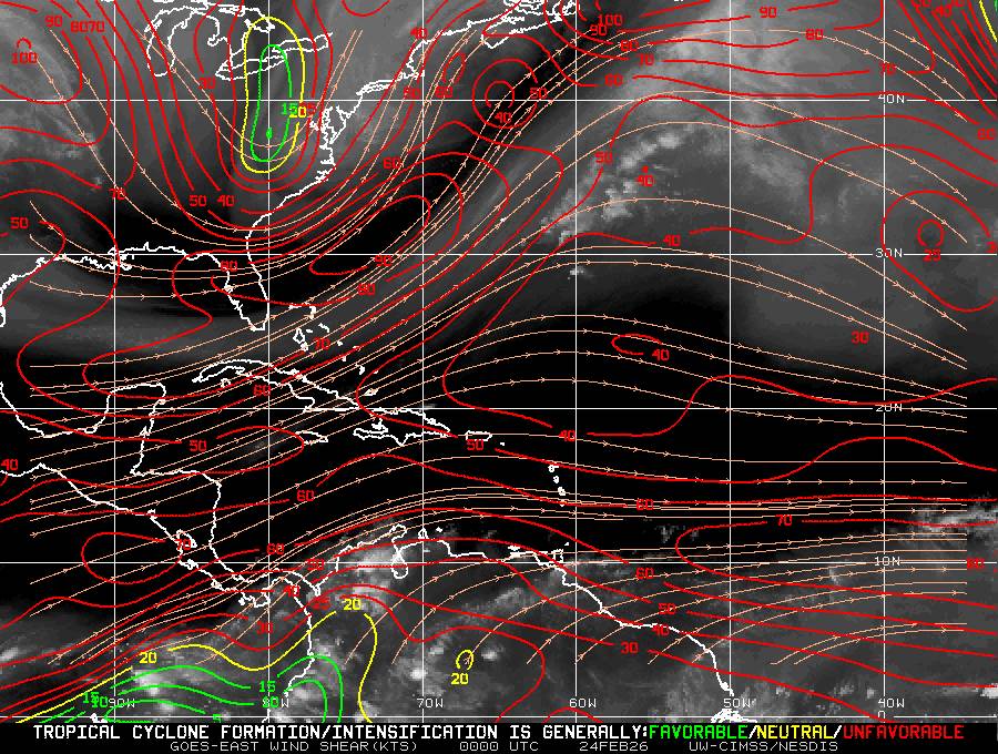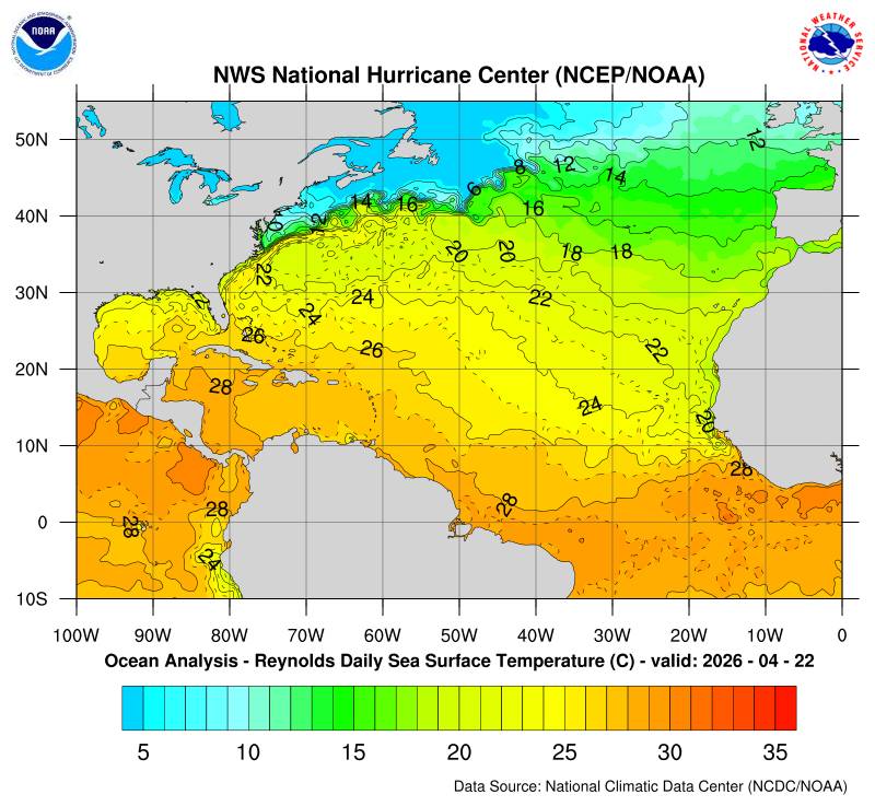 Il n’y a pas de cyclone ni de système surveillé par le NHC en Atlantique. Nous ne sommes pas actuellement en période cyclonique