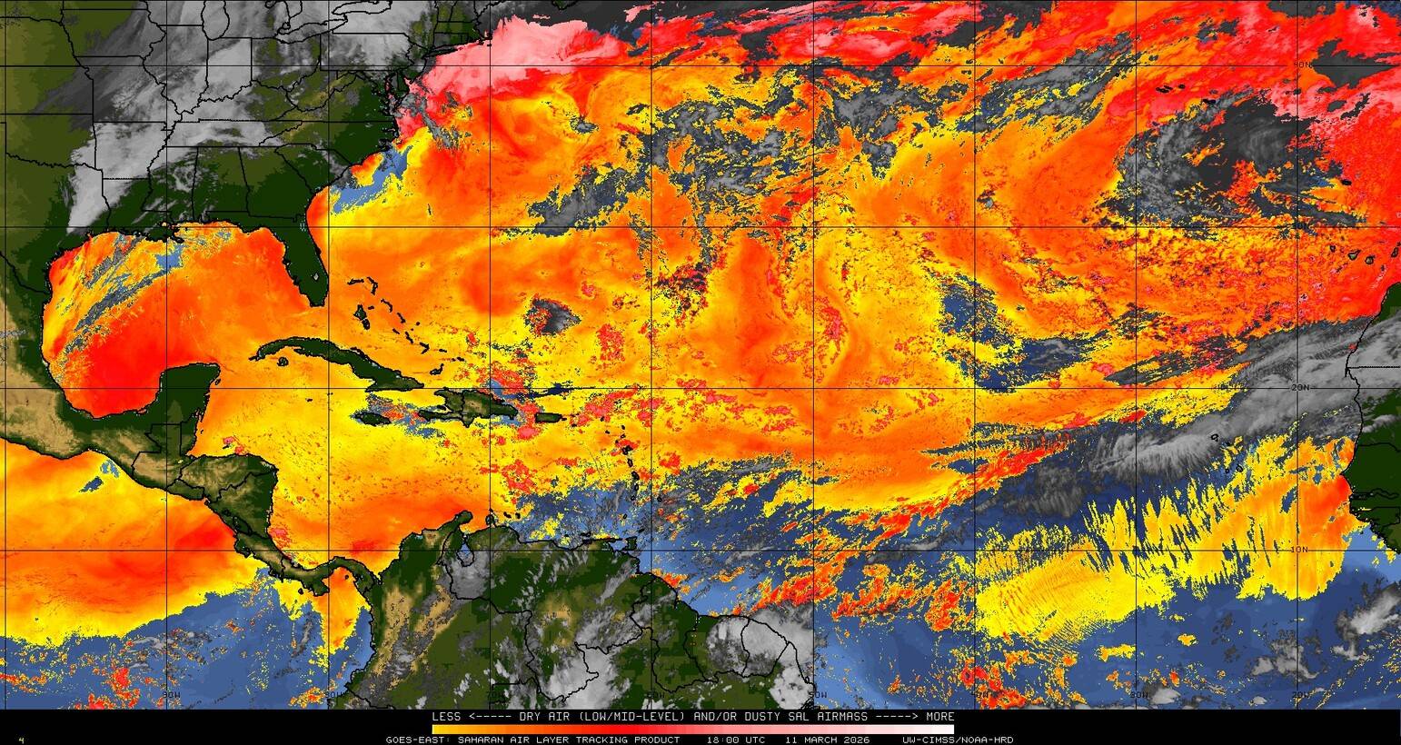 Il n’y a pas de cyclone ni de système surveillé par le NHC en Atlantique. Nous ne sommes pas actuellement en période cyclonique