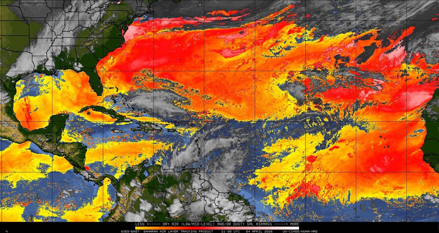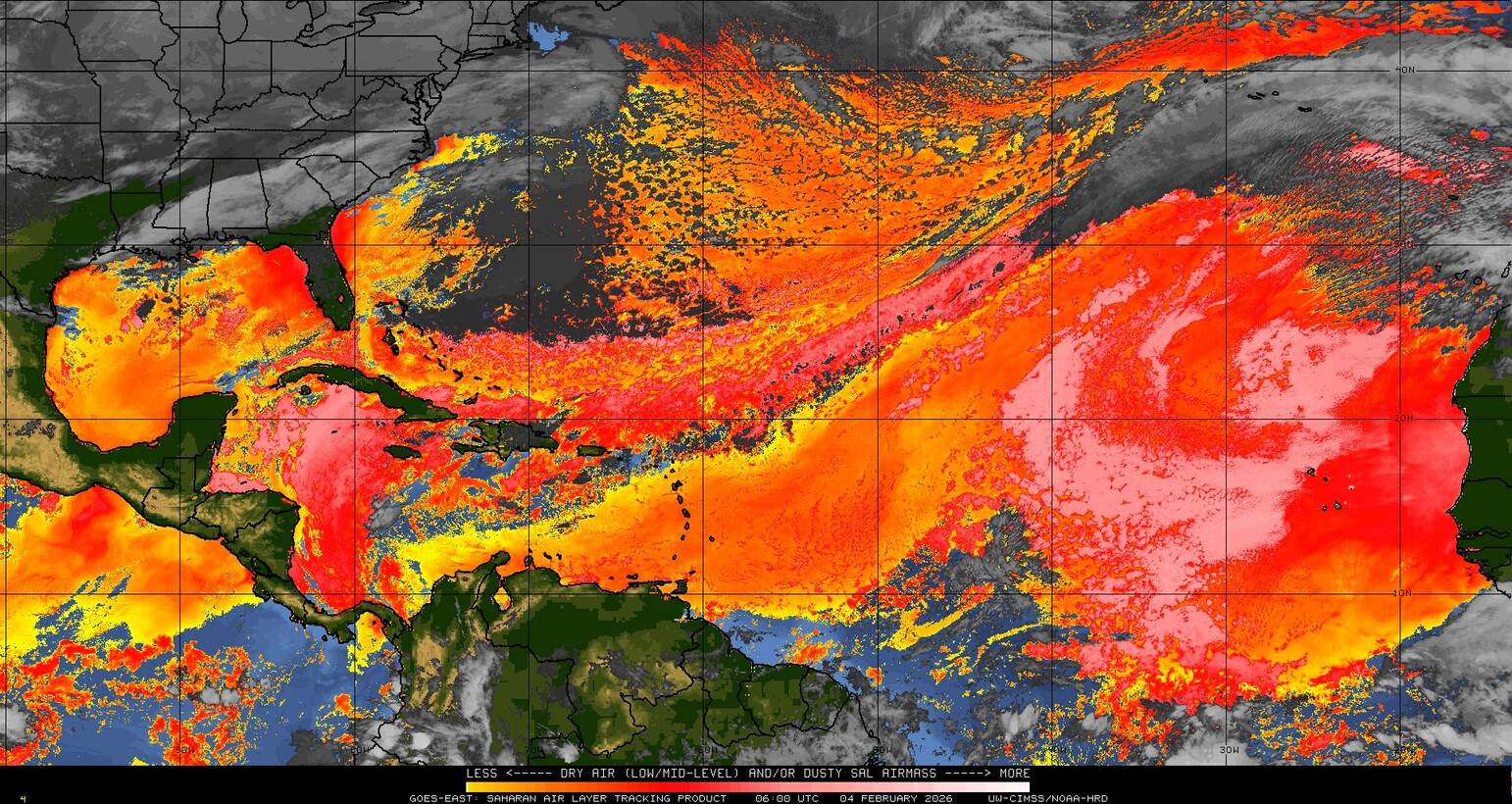 Il n’y a pas de cyclone ni de système surveillé par le NHC en Atlantique. Nous ne sommes pas actuellement en période cyclonique