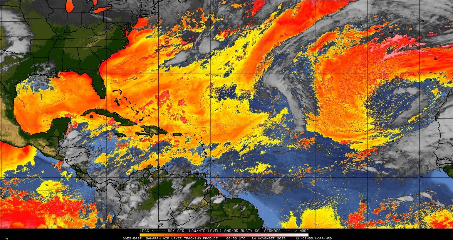 Il n’y a pas de cyclone ni de système surveillé par le NHC en Atlantique.