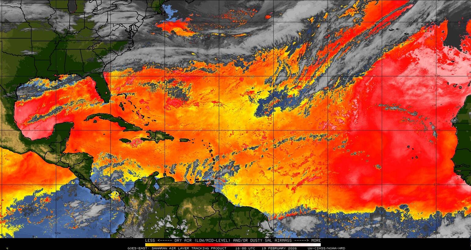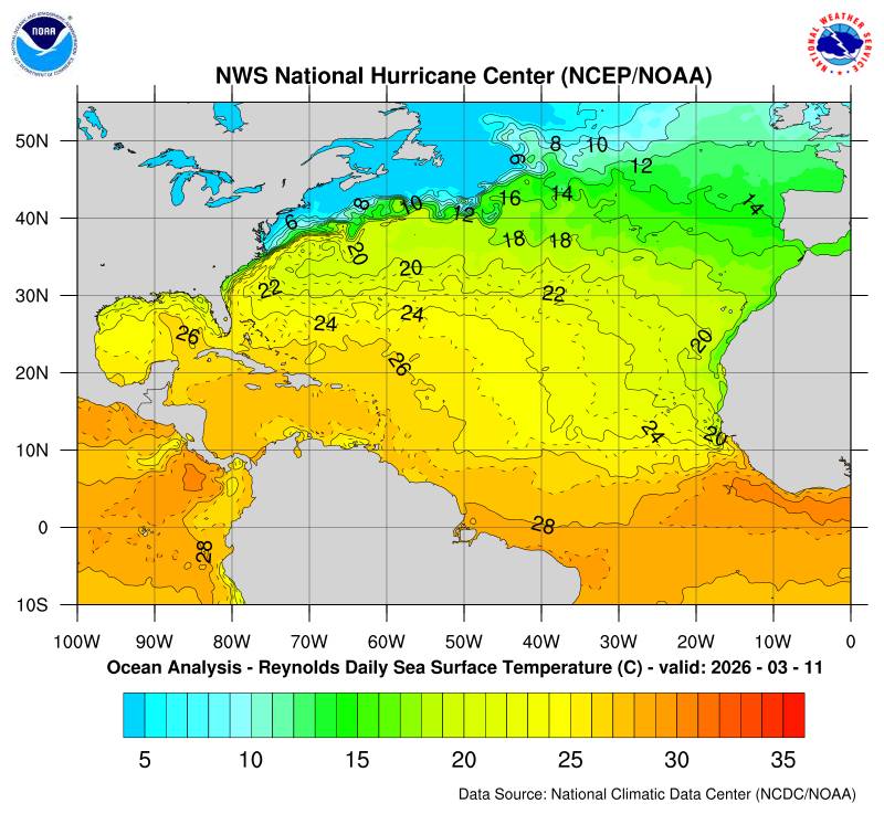 Il n’y a pas de cyclone ni de système surveillé par le NHC en Atlantique. Nous ne sommes pas actuellement en période cyclonique