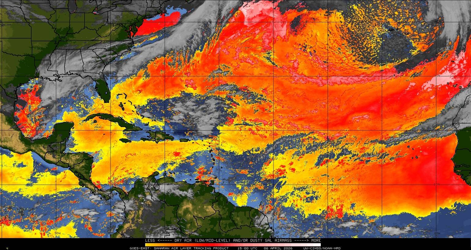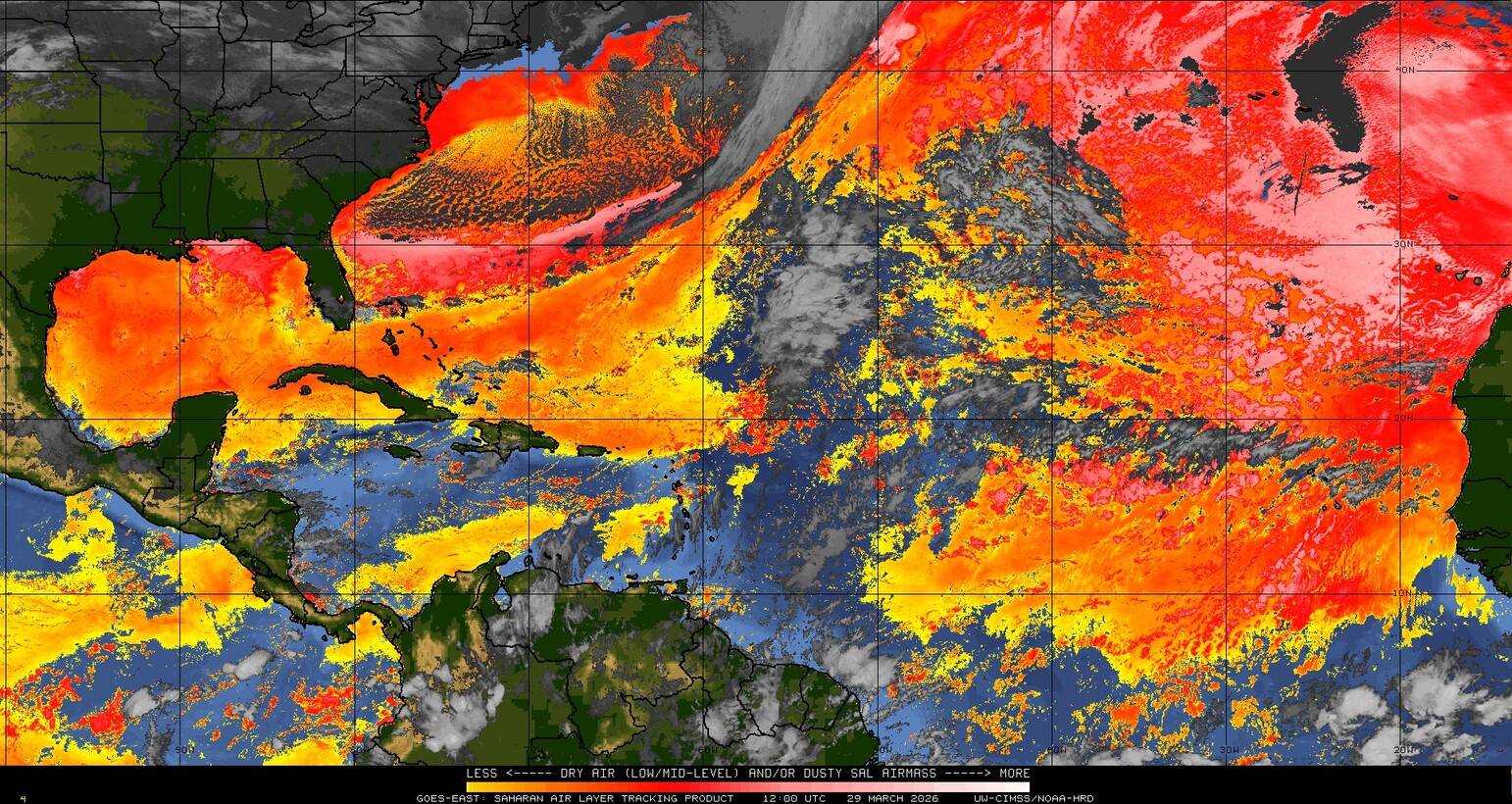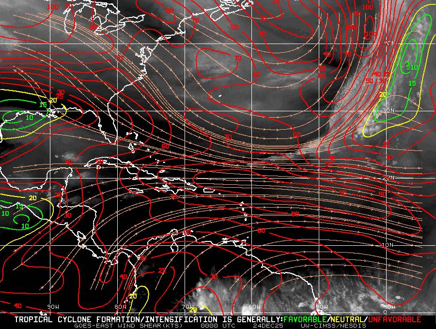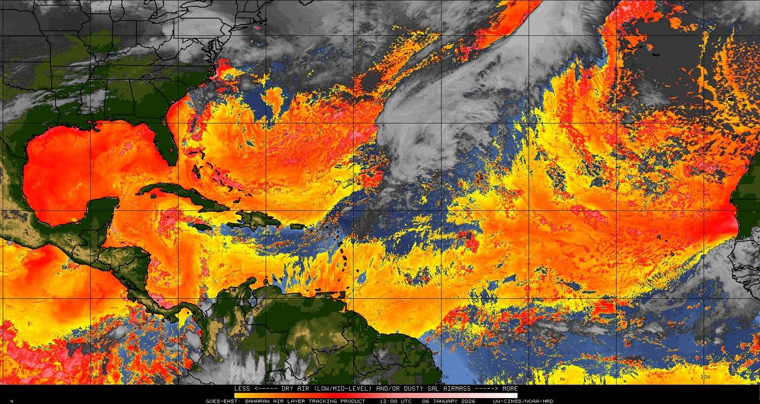 Il n’y a pas de cyclone ni de système surveillé par le NHC en Atlantique. Nous ne sommes pas actuellement en période cyclonique