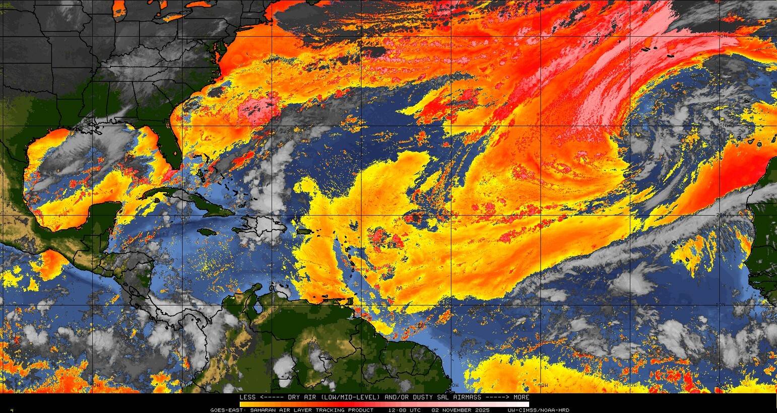 Il n’y a pas de cyclone ni de système surveillé par le NHC en Atlantique.